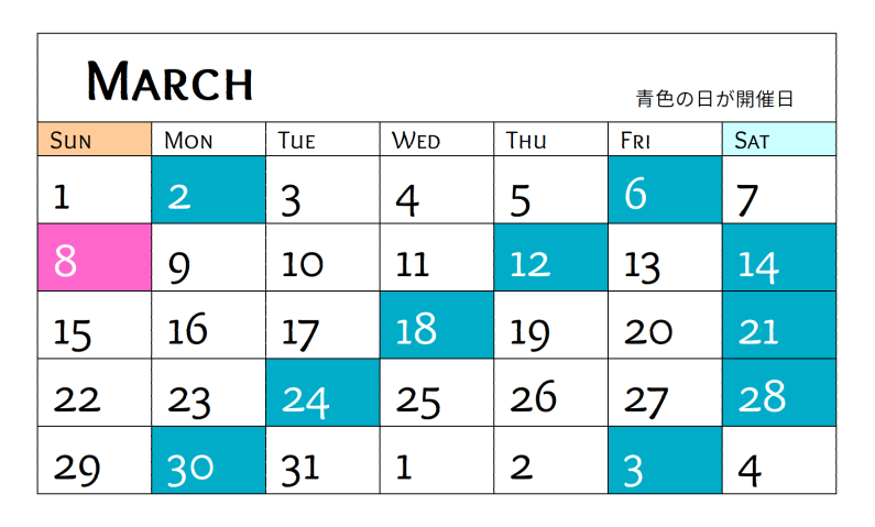 | 2025.12.01 | 12月のカレンダーを更新しました!Googleカレンダーに2026年1月の開催予定日を追加しました! |